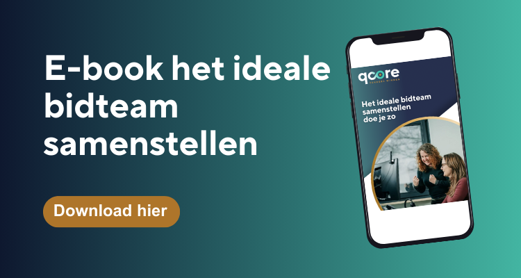 Zoals je in deze blog hebt gelezen, vergroot lange termijn tenderen de kans om uitgenodigd te worden voor onderhandse aanbestedingen. Benieuwd hoe je een succesvol bidteam samenstelt om aanbestedingen te winnen? Download dan nu het E-book 'Zo stel je een succesvol bidteam samen'.
